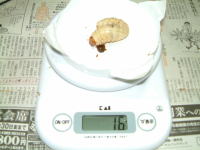 | 2月7日 | 久しぶりに、瓶を引っ張りだしてみたところ、何やら暴れまくり!の様子だ(°o°; おまけに、カビまで生えているので即!瓶交換を決断。![]() 瓶の上部から出てきた幼虫は、やはり殆ど成長していない様子だ(+o+) ![]() 取り合えず体重を測定してみたところ、前回から3gしか増えていない! なんだかこの飼育記の結末が見えた感じです(^_^;) それでもめげずに良形を目指し、体重測定後!1400PPボトルに入ってもらい、再度温室の奥へ入って頂きました。 |