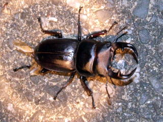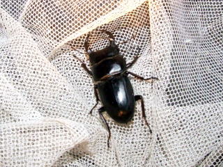 その後、気を取り直して!飛来する普通種を拾い集めていると、ライト前方から小さめですが!ミヤマとは明らかに違う♂のクワガタが旋廻しながら飛んできました。思わず捕虫網を振り回し何とかネットインです。そ〜っと網の中を覗き込んでみるとw(°o°)w