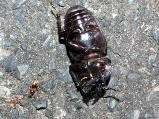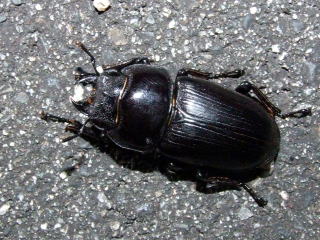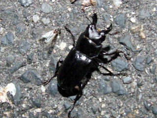 19:30点灯開始 点灯して5分でアカアシペアの飛来があり『好調な滑り出しだな^^』その後、ミヤマ♀ノコ♀や飛来しなくても良いカブト♀が飛んできます。時折吹く風に落下地点も定まらず、広範囲に捜索活動をし、疲れたので椅子に座ってティータイム♪ いつしか20:30を過ぎ、甲虫の飛びも止まり『やはり三日連続同ポイントは厳しいかな?』などと思いながらライトの後方から灯かりの範囲を見渡していたら・・・ライトの前に黒い物体が(°o°;