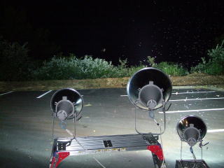 一旦点灯した状態のライトを脚立から下ろし、3〜4メートル左側へ移動後ライトを再セット!三つ目のライトを乗せた瞬間!『パッ!!』・・ライトが消えちゃいました(TOT)