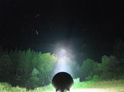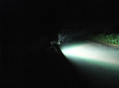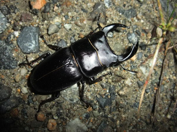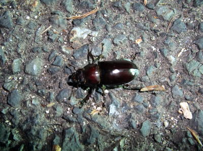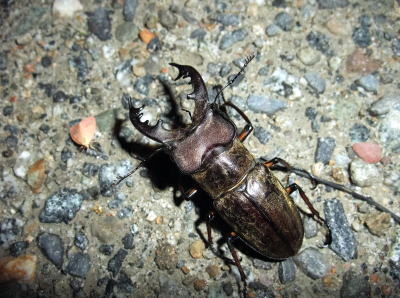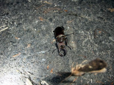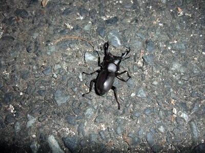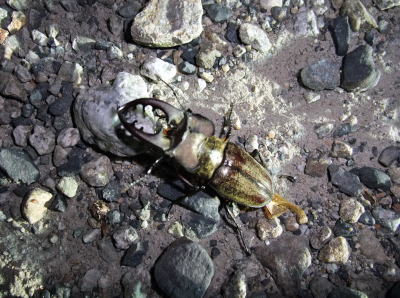こりゃ今夜はダメかも・・・と思った時です。ライトの右からクワガタが旋回しライトの前方に着地!