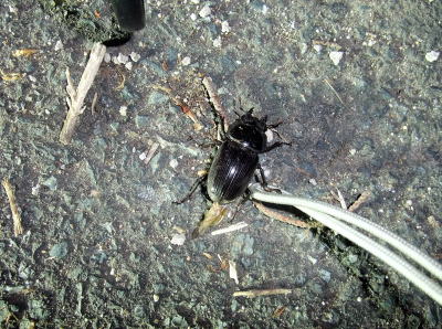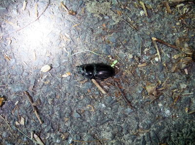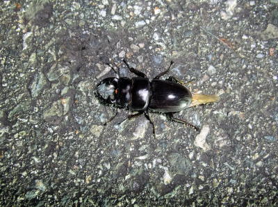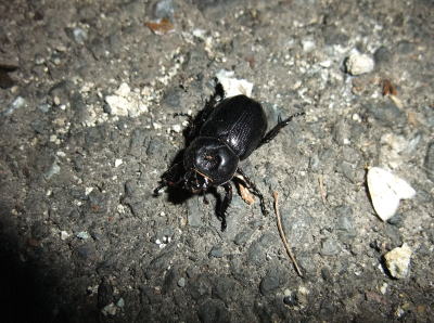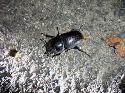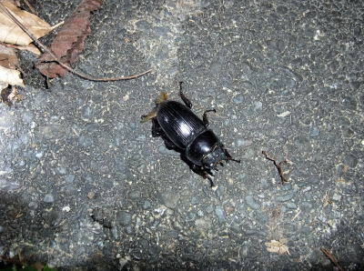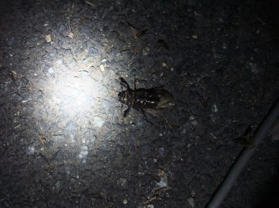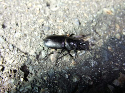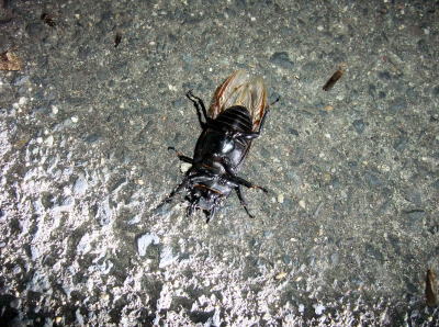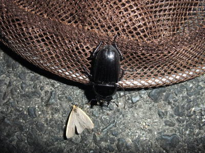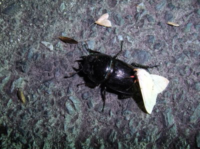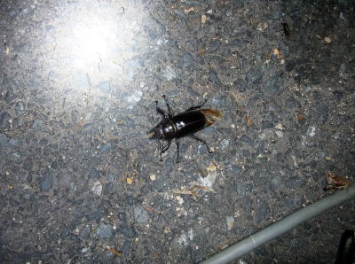 しばらくクワガタの飛来が無いなかミヤマ♀が飛来! その直後ライトをめがけて一直線に飛んできたクワガタがライトの後方に落下!『飛び方からしてオオクワ!』