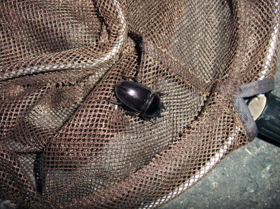 網の中のオオクワ♀を回収し、どこかに落下したであろう♂を探したけど見つかりません。