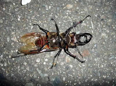 飛来時にはオオクワと確信し、落下個体を確認してみると・・・