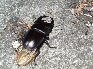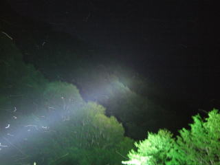 | 大歯♂の飛来で一気にテンションアップ♪『22:00まで粘ろうか?』とも思ったのですが・・・普通種の飛びが最悪で!ミヤマ♂・♀の合計が7個(涙)とても粘る気にもなれず。予定通り21:30消灯し、下山しました。下山途中、『○○ポイントに○○さん来てるかな?』と思いながら下山したが、やはり誰も居なく!『やっぱり独りぼっち採集かぁ(涙)』 まっ!結果オーライって事で良しとしましょう。 |