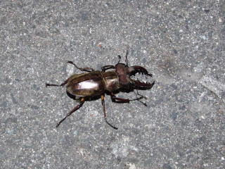 | 同時に小さなミヤマ♂も飛来し、チョッとだけオオクワの飛来に期待が膨らみます。 しばらくすると今度は先ほどより大きな♂クワガタが! ジーっと目で追っているとそいつはフッっとライト右後方の草むらへ落下! 『捜索開始ぃ〜♪』草を掻き分け探すが落下したクワガタは見つからず。『もう少し草の深い部分に落ちたのかな?』 そんな事を思いながら深い草の根元部分を手で掻き分けたら・・・ ガサガサガサッ!! 捜索する手の指先から5センチ位のところになんとマムシがとぐろを巻いてる・・・ 『ぎぇ〜〜〜っ!!』悲鳴にもならない声を発し草むらから一目散です。 『間一髪!!もし、こいつの頭が指先の方にあったら・・・』なんて事を考えるとゾッとします。(気温が下がったお陰でマムシの動作も鈍ってたみたいで助かりました。) 落下したクワガタも気になるけどマムシも気になる『ダ・ダメだ!採集に集中出来ない。』 その後、ミヤマ2♂2♀を追加し22時15分消灯。 気温を確認すると14度 『寒い訳だ』・・・ クワ採集を始めて一番の恐い思い(幽霊より蛇が大嫌いな私)をし、今期初日を終え無事下山出来る感謝の気持ちで帰路につきました。 |