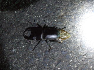| 先月のうちから今期の初陣は今日と決め、2〜3日前から天気予報と睨めっこ(笑) バッチリ日中の気温は28度まであがり蒸し暑い。予報では夜、気温が下がるみたいだけど『今日は採れる!』いつもの様に勝手に思い込み(笑)いざ出発!! 現地到着は18時。いつものポイント状況を確認しつつ(気温低いです。)車内でマッタリと時間を潰し定刻を待つ! 19時50分 点灯! 上流から冷たい風がそよそよと吹いてジャンバーを着てても寒く、何だか採れる気がしない『まぁシーズン頭はこんなもんでしょう』 20時35分 今期初クワガタがライト左前方を大きく旋回しながら落下。 ライトを照らした先にはミヤマ♂が到着しておりました。 |